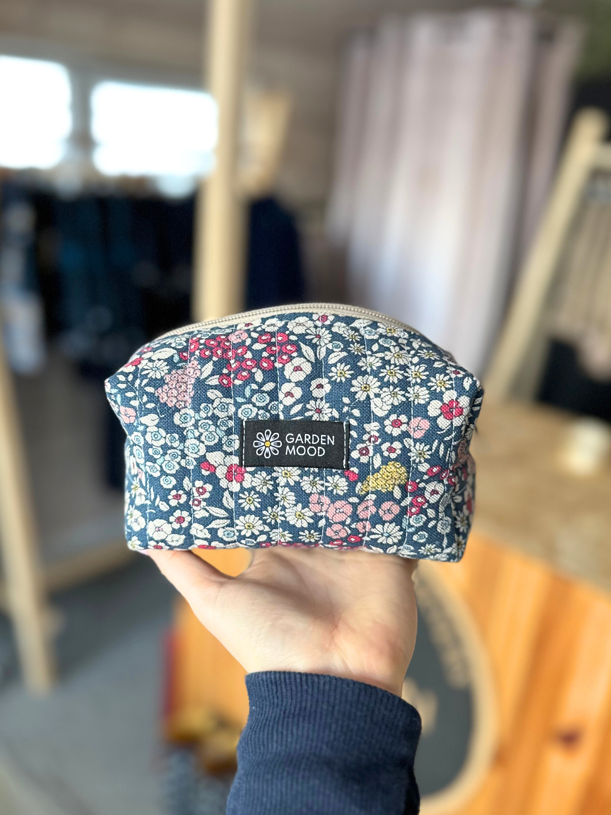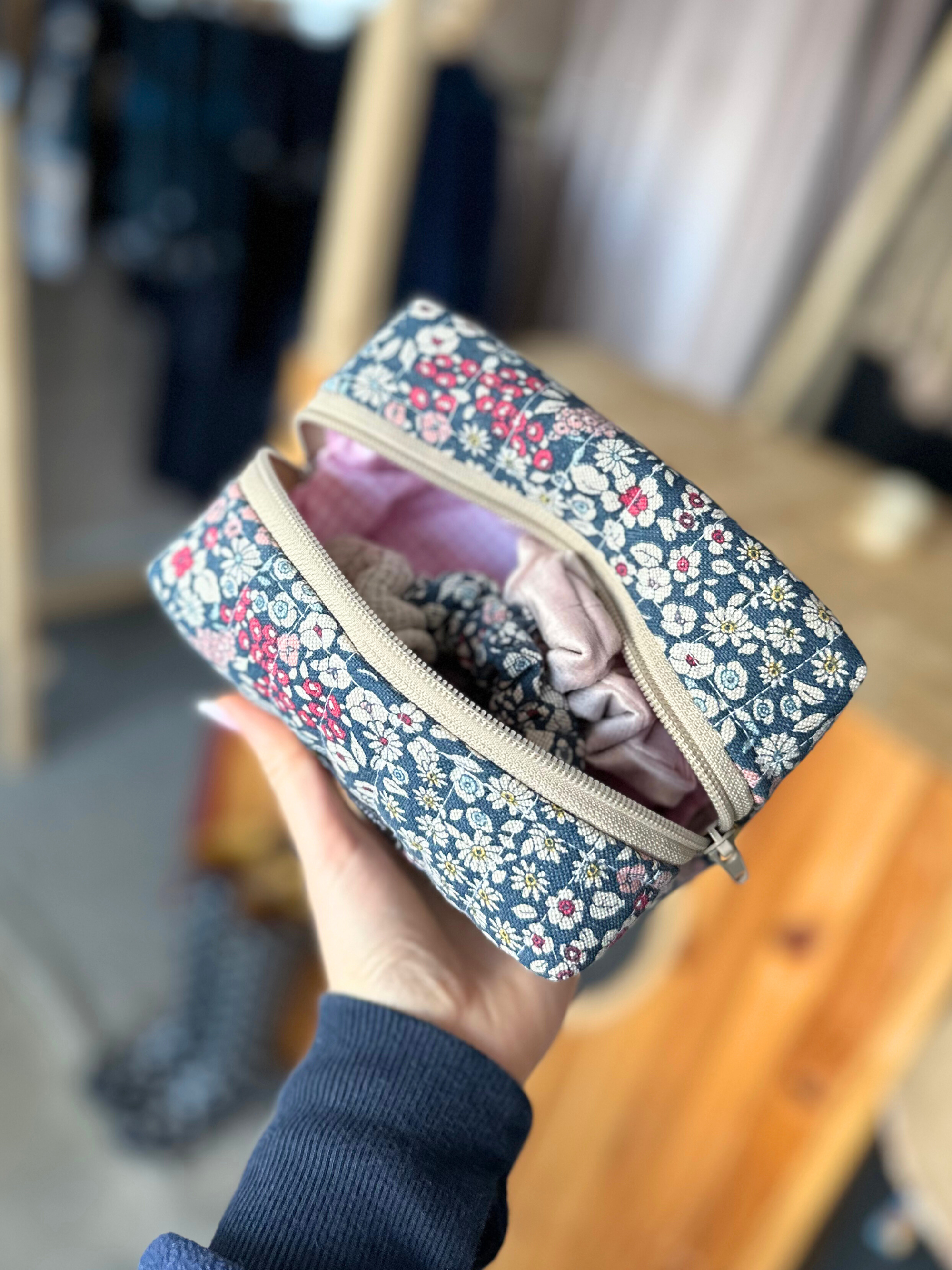 Kosmetinė puikiai palaiko formą dėl kelių audinio sluoksnių. Vienoje pusėje yra juostelė, už kurios patogu laikyti.