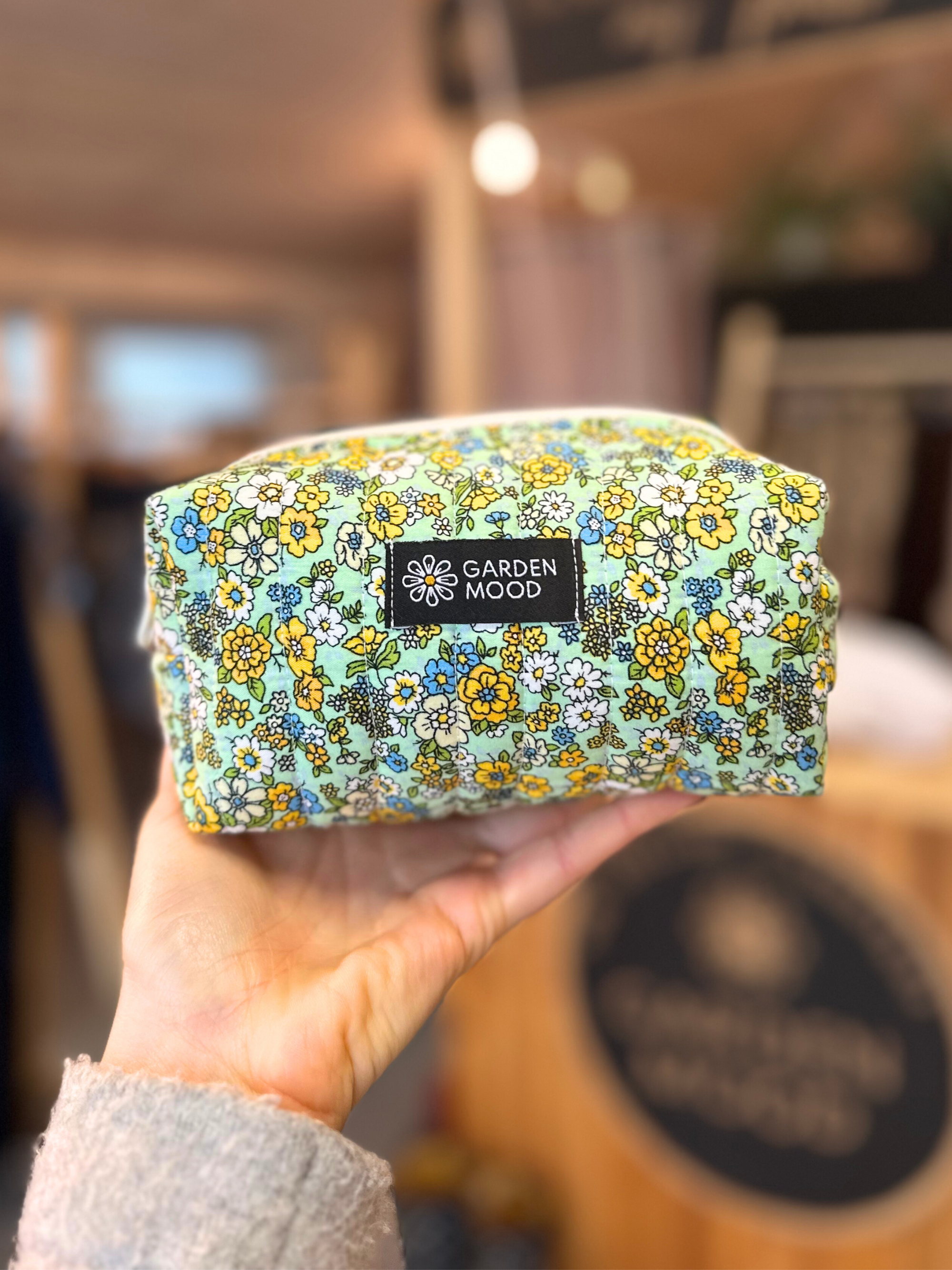Kosmetinė puikiai palaiko formą dėl kelių audinio sluoksnių. Vienoje pusėje yra juostelė, už kurios patogu laikyti.