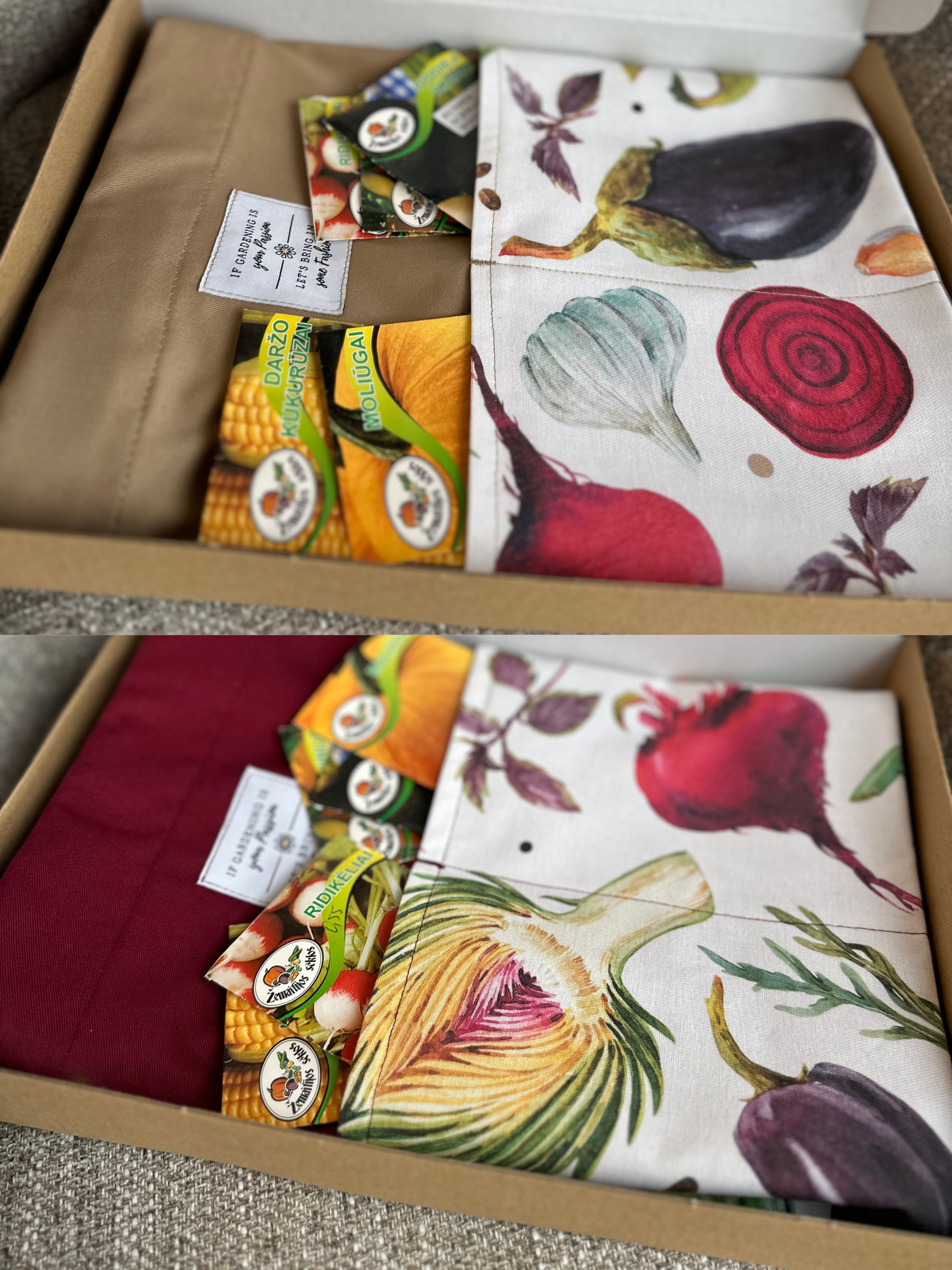 Rinkinys „Daržovių mylėtojai” (prijuostė su sėklomis)